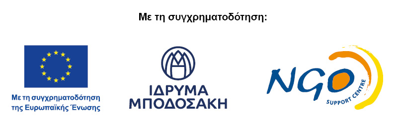 Με τη χρηματοδότηση της Ευρωπαϊκής Ένωσης. Οι απόψεις και οι γνώμες που διατυπώνονται εκφράζουν αποκλειστικά τις απόψεις των συντακτών και δεν αντιπροσωπεύουν κατ’ ανάγκη τις απόψεις της Ευρωπαϊκής Ένωσης, του Ευρωπαϊκού Εκτελεστικού Οργανισμού Εκπαίδευσης και Πολιτισμού (EACEA), του Ιδρύματος Μποδοσάκη ή του NGO SUPPORT CENTRE. Η Ευρωπαϊκή Ένωση, ο EACEA, το Ίδρυμα Μποδοσάκη και το NGO SUPPORT CENTRE δεν μπορούν να θεωρηθούν υπεύθυνοι για τις εκφραζόμενες απόψεις.